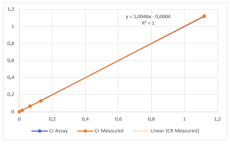 根據腐蝕模型的預測,鉻含量低于0.04%的碳鋼會很容易受到流動加速腐蝕。這個監控閾值處于奧林巴斯Vanta分析儀測量鐵基鋼材中鉻元素含量的分析范圍內。在碳鋼管道中加入少量的鉻,可以大大減少流體加速腐蝕的速度。因此,對碳鋼中低含量的鉻(Cr)進行高精度的測量,是預測這些管道使用壽命的關鍵。
